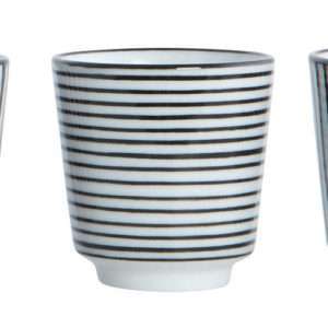 Wir präsentieren Ihnen 3 handbemalte weisse Steinguteierbecher an, die 2 x längs und 1 x quer schwarz gestreift und von Hand bemalt wurden. Am besten natürlich im Set mit den Kaffeeschalen und den Tassen der gleichnamigen Retroserie im 50er/60er Jahre Stil von House Doctor. Lieferumfang: Drei Eierbecher, ohne Dekoration, Material: Steingut
