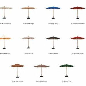 Lieferumfang: Ein Sonnenschirm, Farbe/Abmessungen/Gewicht nach Wahl, keine Dekoration im Lieferumfang, mit Transporttasche, ohne Sockel, Sockel optional bestellbar, Material: Stab in Douglasie Holz und Schirm in Canvas Stoff.