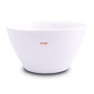 Mittelgroße Schale aus der Erfolgsserie Word Collection von Keith Brymer Jones. Er hat sich in seiner Word Range Erfolgserie auf klassiches weiß konzentriert, jedes Stück erhält noch eine Prägung mittels Stempel (Retro Schreibmaschinen Schrift), die entsprechend des Stückes coloriert wird. In diesen Meßbecher wurden die Worte `soup` eingeprägt, was übersetzt soviel wie Suppe bedeutet. Suppenschalen kann man nie genug haben, zudem sie auch eine gute Figur als Müslischale, Pudding-, Nuss-, Aufbewahrungs-, Kaffeeschale oder,oder oder machen – hier sind der Phantasie keine Grenzen gesetzt.