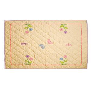 Passend zum Butterfly Cottage gibt es auch einen Spielteppich, damit die kleinen Hausbesitzer weich und ungestört spielen können. Im gleichen Design und Farben, mit kleinen Schmetterlingen und Blumen bestickt.