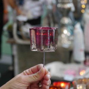Glas, 11x7cm, Gesamthöhe: 11cm (Picker: 5 cm, Glashöhe: 6 cm) Durchmesser: 7 cm, geeignet f. Teelichter bis max. 5 cm Durchmesser.